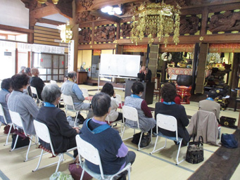 お参りの後、北海道多度志町の殿平 善彦師が法話のお取り次ぎ